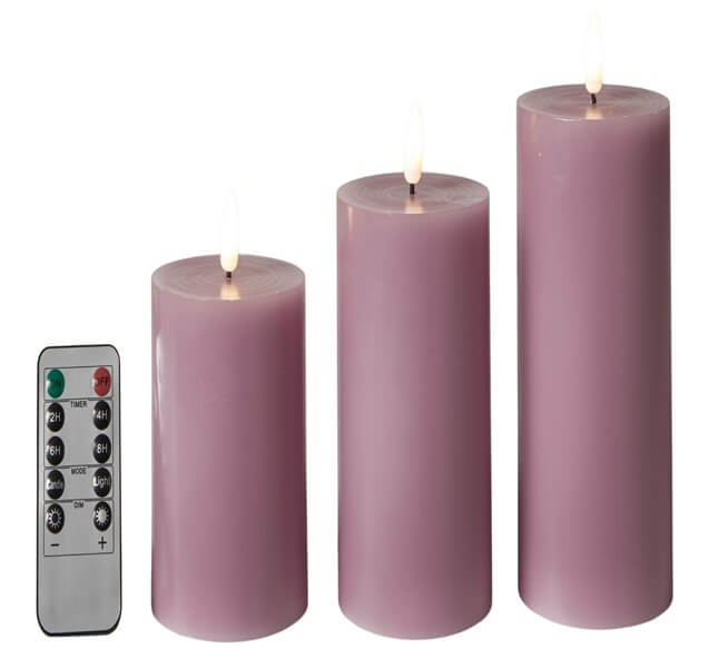 Da’core LED Bloklys flad top 3stk Violet Da’core LED Bloklys flad top 3stk Violet er det perfekte valg til at skabe en hyggelig atmosfære derhjemme. Med et elegant design og en beroligende violet farve, tilføjer disse kunstige stearinlys en varm g