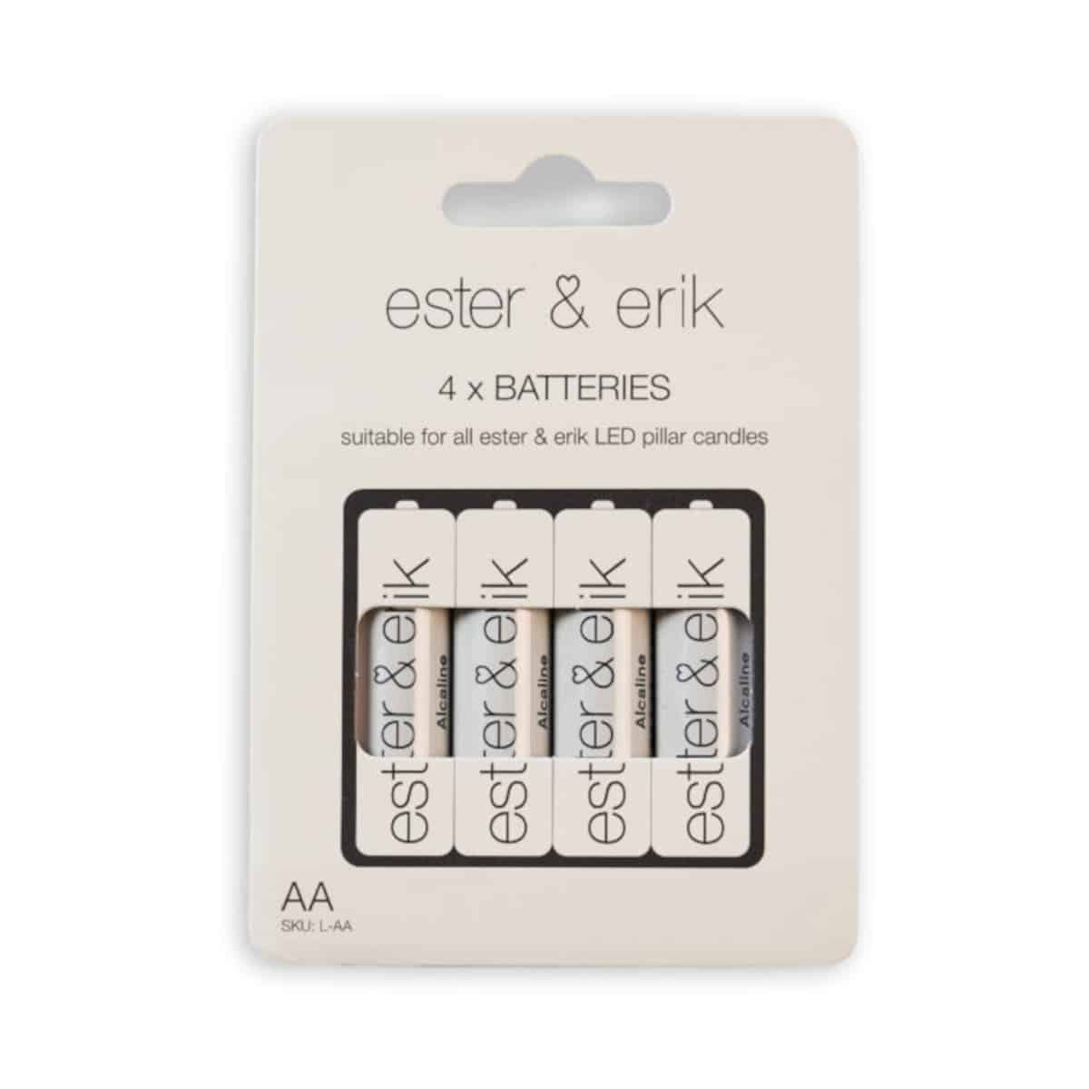 ester & erik AA Batterier – 4-pak. AA passer til alle ester & erik LED bloklys. ester & erik AA Batterier – 4-pak