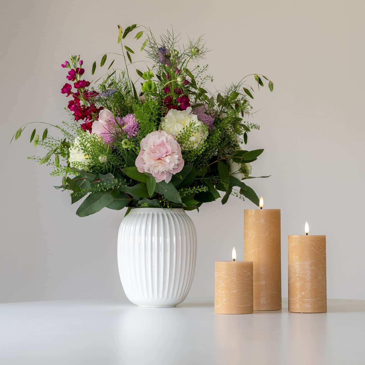 Luna LED-bloklysene er elegante og realistiske stearinlys med batteri, der skaber en hyggelig stemning.Â