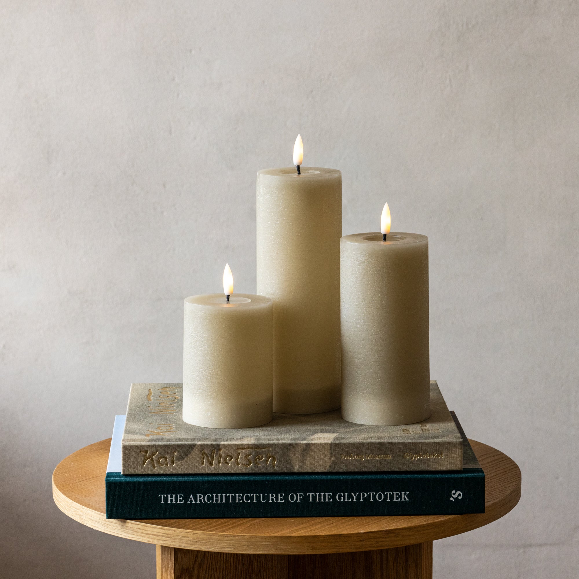 Sia LED bloklys genopladelig ø 7.5 x 10-15-20 cm 3 stk Sand