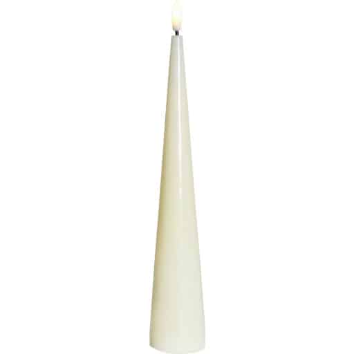 Kunstigt stearinlys i ægte stearin med flakkende LED flamme Med sit enkle, kegleformede design og rene råhvidefarve, tilfører dette 26 cm høje LED bloklys fra Sirius en varm og rolig stemning til hjemmet. Flammen er så naturtro, at du næppe bemærker forsk