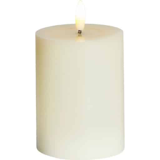 Kunstigt stearinlys i ægte stearin med flakkende LED flamme Med sit enkle design og råhvide farve, tilfører dette 10 cm høje LED bloklys fra Sirius en varm og rolig stemning til hjemmet. Flammen er så naturtro, at du næppe bemærker forskellen – den blød