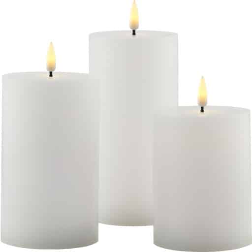 Pakke med 3 stk. Sirius Sille genopladelige LED bloklys på hhv. 10cm, 12,5cm og 15cm i højden. Undgå batterispild da Sille lysene er genopladelige – husk at tilkøbe en opladestander, som passer til alle Sille Genopladelige lys. Skab liv i hjemmet med de n