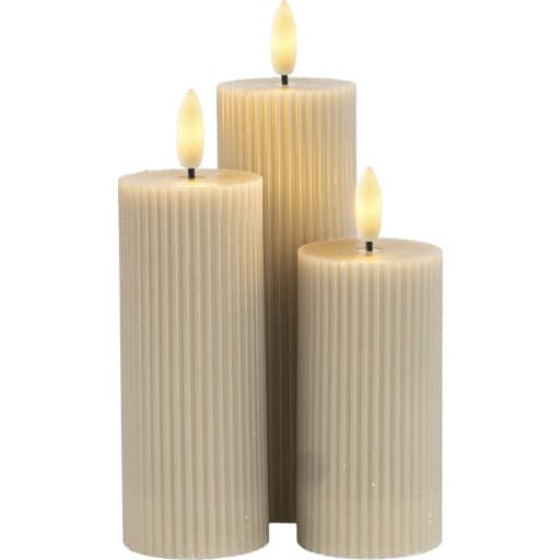 Oplev den magiske stemning i Smilla kunstige stearinlys Træd ind i en verden af elegance og hygge med Smilla genopladelige stearinlys. Disse lys er ikke bare lys; de er en kunstform i sig selv. Med deres rillede overflade og ægte stearinudseende, bringer
