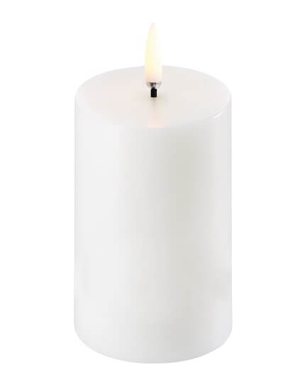 Skab Hygge med Uyuni LED bloklys Nordic white 5×7,5 cm Oplev charmen ved levende lys uden bekymringer med vores Uyuni LED bloklys Nordic white 5×7,5 cm. Disse lys har en unik 3D-flamme, der ligner flammen fra et traditionelt stearinlys, hvilket skaber en
