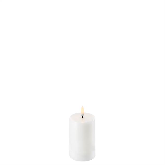 Uyuni Lighting LED Pillar bloklys – Ø5 x H7,5 cm Smukt og moderne LED bloklys fra Uyuni Lighting med 3D flamme og udført i voks. Dette gør at lyset ser meget virkelighedstro ud. Fordelene ved LED lys er mange – blandt andet undgår du svineri fra lyset og