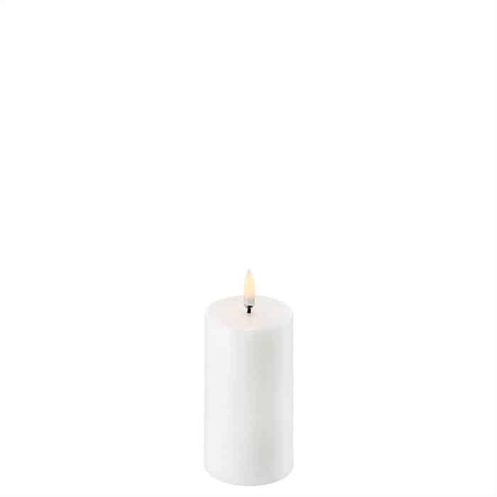 Uyuni Lighting LED Pillar bloklys – Ø5,8 x H10 cm Smukt og moderne LED bloklys fra Uyuni Lighting med 3D flamme og udført i voks. Dette gør at lyset ser meget virkelighedstro ud. Fordelene ved LED lys er mange – blandt andet undgår du svineri fra lyset og