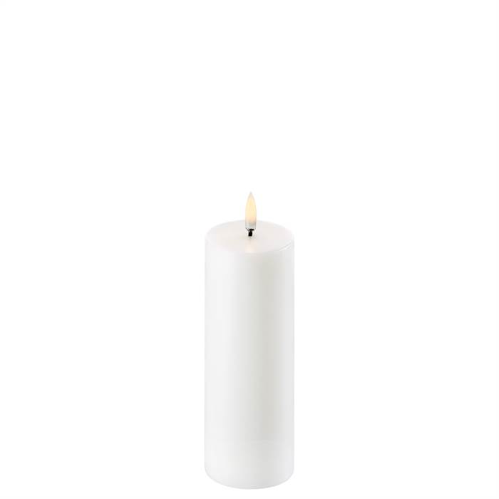 Uyuni Lighting LED Pillar bloklys – Ø5,8 x H15 cm Smukt og moderne LED bloklys fra Uyuni Lighting med 3D flamme og udført i voks. Dette gør at lyset ser meget virkelighedstro ud. Fordelene ved LED lys er mange – blandt andet undgår du svineri fra lyset og